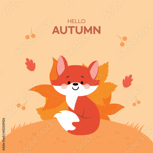 © 애영 고, Obraz premium 가을배경 귀여운 여우