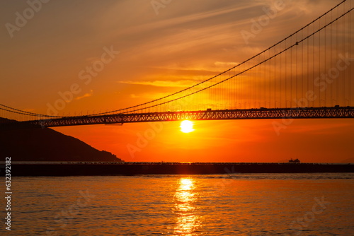 © photop5, Obraz premium 明石海峡大橋と夕日 神戸市垂水区にて