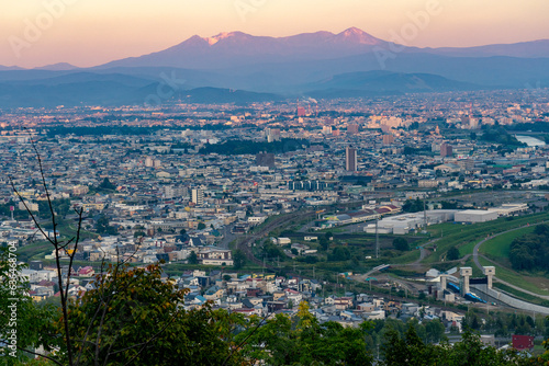 Obraz premium 嵐山展望台からの夕景(北海道上川郡高須町)
