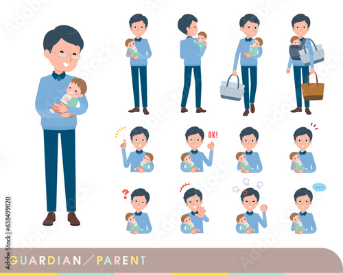 © toyotoyo, Obraz premium 赤ちゃんの保護・世話をするお父さんのセット