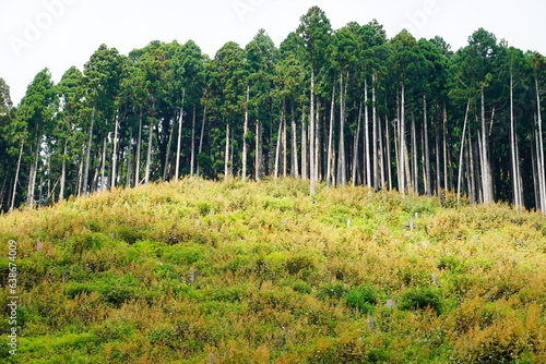 Obraz premium 京都 貴船 夏山と木の背景
