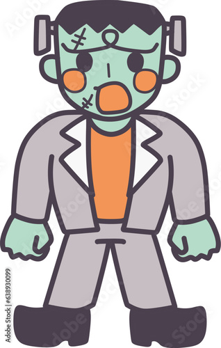 Obraz premium 可愛くデフォルメしたフ驚いているランケンシュタインのカラーイラスト
