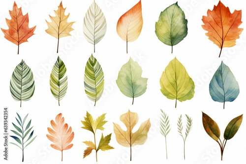 Fototapeta premium 水彩調の植物のイラスト。北欧風の 葉っぱのイラスト。