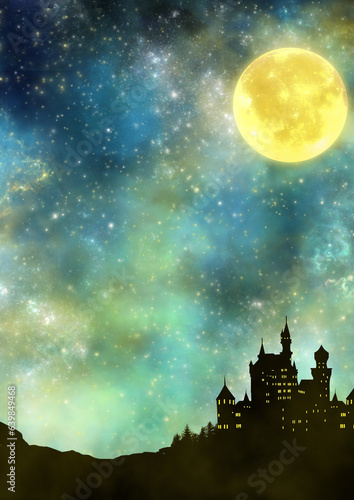 © nijin, Naklejka premium 星空に輝くお月様とお城の風景
