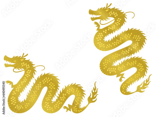 © Nora Hachio, Obraz premium 金色の龍のシルエットイラストセット
