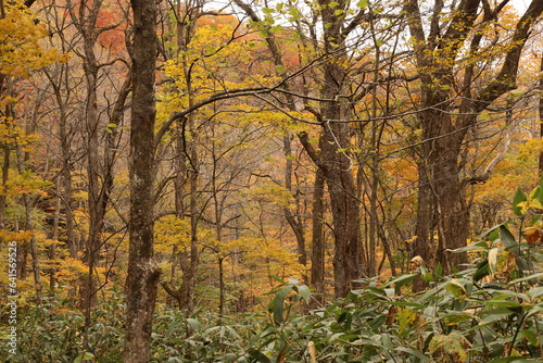 © onaka, Naklejka premium 秋の奥入瀬渓流。青森県の十和田八幡平国立公園にある渓流。ブナなどの生える森を清らかな水が流れる。