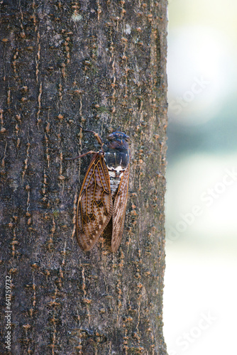 Obraz premium 真夏の木の幹に止まるアブラゼミ