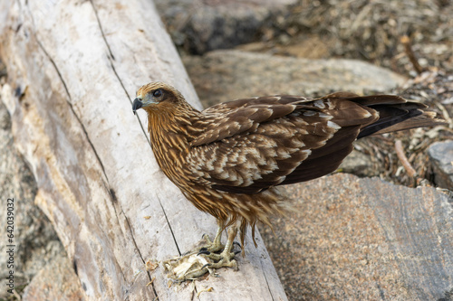 © yukikazechihayate, Fototapeta premium 朽ちた木の上で餌を食べるトビ