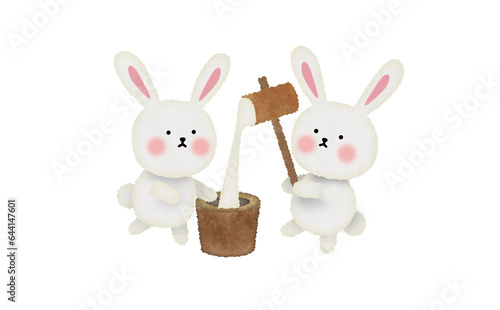 © pinoko, Fototapeta premium 餅つきをするうさぎのイラスト
