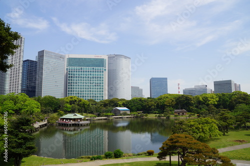 © mname, Fototapeta premium 浜離宮 潮入の池と汐留高層ビル群