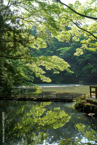 Obraz premium 伊勢神宮内宮の新緑が写り込む池