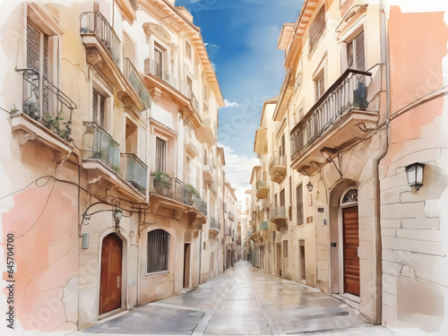 © Camellia Studio , Fototapeta premium 水彩画背景_世界旅行_スペイン_バルセロナ_01