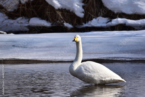 Obraz premium 浅い川に立つ白鳥