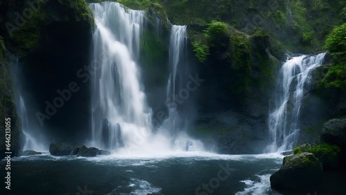 Fototapeta premium 滝と新緑のある風景