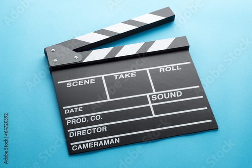 Obraz premium 水色の背景にカチンコ