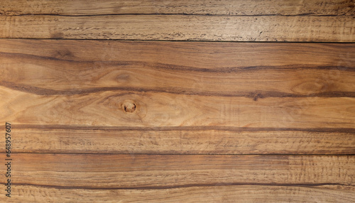 Fototapeta premium 少し照りのある濃いめの茶色の木目模様の入った板、ウッドテクスチャ