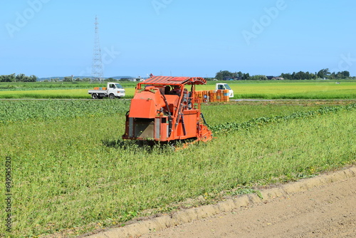 © FRANK, Obraz premium 大豆の収穫 コンバイン