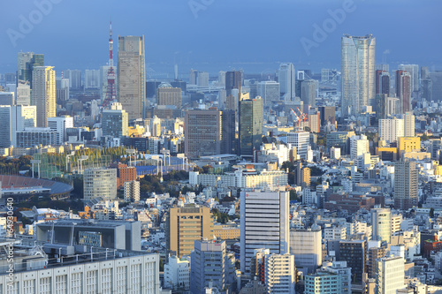 Obraz premium 夕方の東京都心の眺望(新宿・六本木・お台場方面を一望)