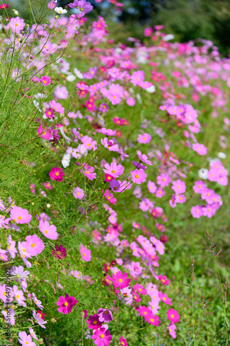 Naklejka premium 八雲町噴火湾パノラマパークのコスモス畑
