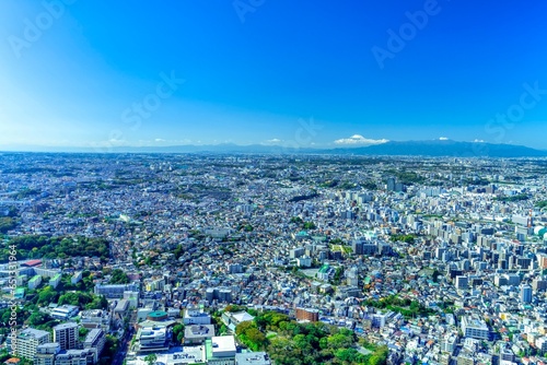 Fototapeta premium 横浜風景みなとみらいから望む富士山と街並み