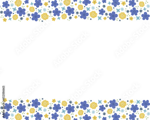 Obraz premium 北欧風の小花柄の帯フレームイラストデザイン(青)