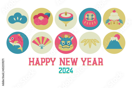 Fototapeta premium 2024年辰年の年賀状はがきテンプレート ヨコ