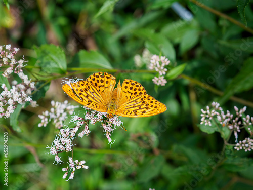 © かめです, Obraz premium 藤袴の花で翅を休めるツマグロヒョウモン