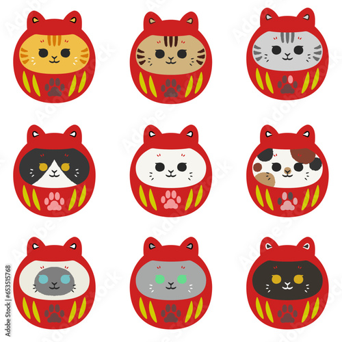 Fototapeta premium 色々な柄の猫の達磨イラストセット