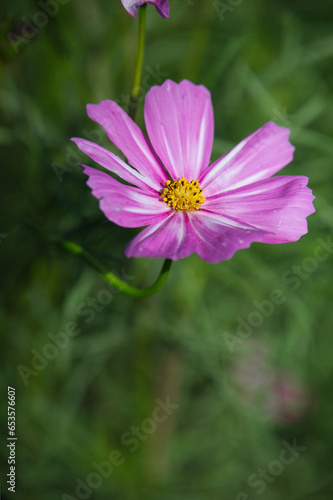 Obraz premium 初秋の公園で、可憐な花を咲かせているコスモスの美しい風景