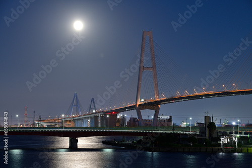© Kazuyoshi Ozaki, Fototapeta premium 名港トリトンと中秋の名月