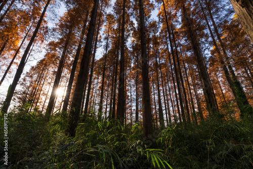 Fototapeta premium 東京都葛飾区 秋の水元公園と紅葉したメタセコイア
