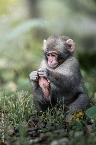 Fototapeta premium 足をいじる小さいニホンザル