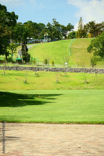 Obraz premium 綺麗な芝生が広がる健康の森公園