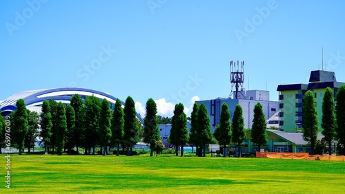 Obraz premium 夏の晴れの日の辰巳の森海浜公園