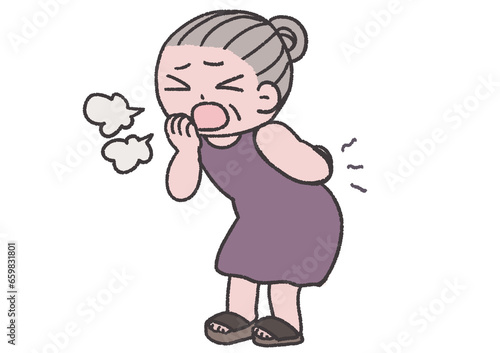 Obraz premium 咳が腰に響くおばあちゃん