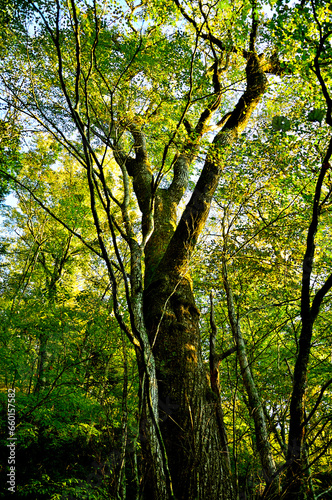 Obraz premium 道志山塊の石割山 石割神社の桂御神木の朝