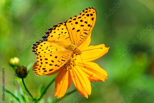 © Snoopy walk, Obraz premium ツマグロヒョウモンとコスモス