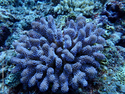© Signyamo, Obraz premium 岩場に生える、青い枝状の珊瑚のアップ