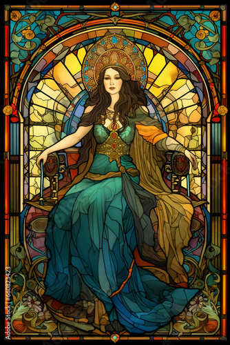 © ayame123, Fototapeta premium ステンドグラス風のクイーンのカード