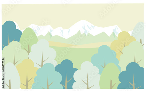 Obraz premium 山と森の自然のベクター背景イラスト