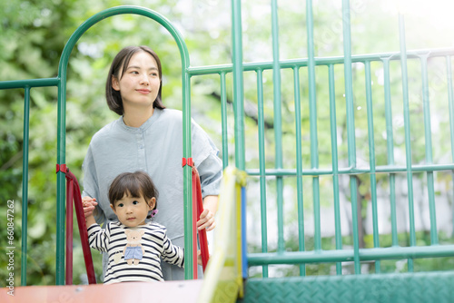 © kapinon, Obraz premium すべり台で遊ぶ親子