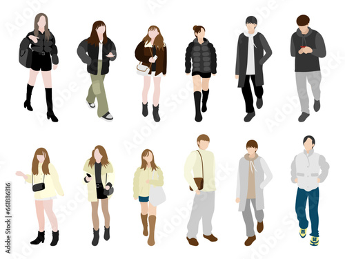 © iko, Obraz premium 冬の街角にいる若者たちの一覧