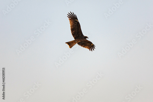 Obraz premium 獲物を狙って低空を飛行するトンビ