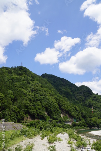 © mname, Obraz premium 新緑の山並みと清流天竜川