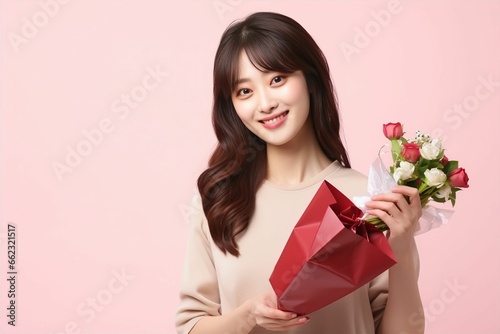 Fototapeta premium 花束を手に持つ日本人女性(プロポーズ・バレンタイン・結婚・記念日)