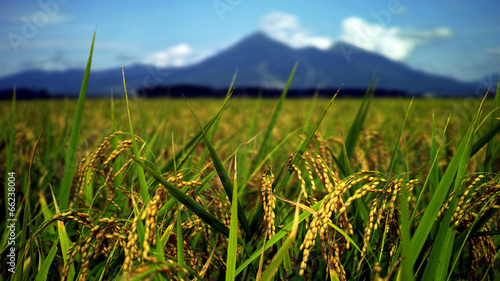 © maso11, Fototapeta premium 磐梯山と稲穂
