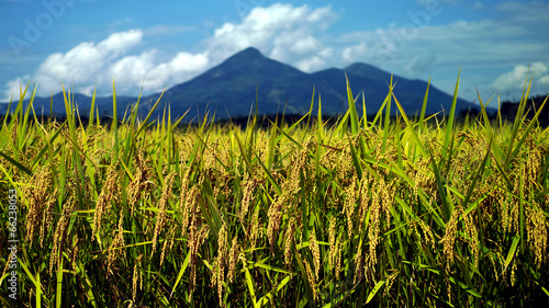 Naklejka premium 磐梯山と稲穂