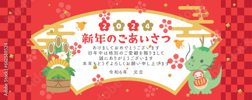 Fototapeta premium 2024年辰年 ビジネス用 新年のごあいさつ