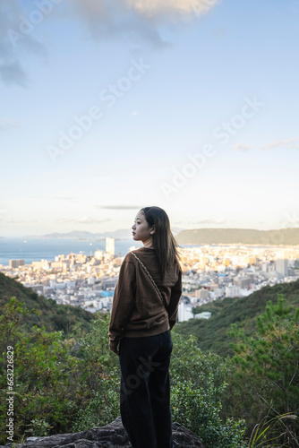 © peach100, Naklejka premium 山林を散策する女性