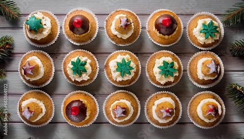 Fototapeta premium おしゃれなカップケーキがたくさん 俯瞰